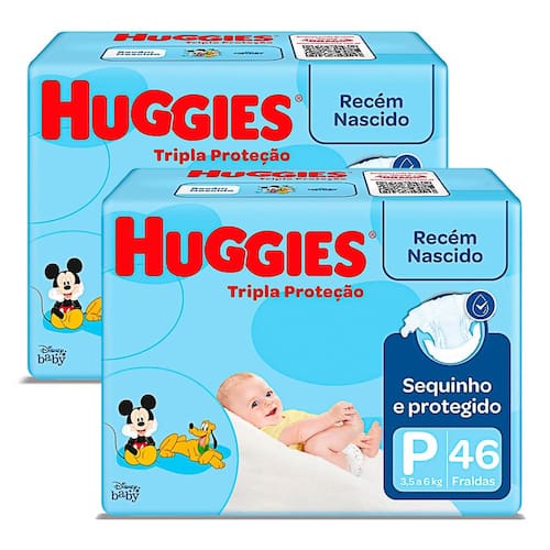 Fralda Huggies Tripla Proteção Tamanho P Pacote Mega 46 Fraldas Descartáveis A Huggies Tripla Proteção é a escolha ideal para manter seu bebê sequinho e protegido contra vazamentos. Com a tecnologia Xtra-Protect de rápida absorção, desenvolvida especialmente para reter líquidos instantaneamente, oferece até 100% de proteção por até 12 horas. Com canais de absorção rápida, barreiras duplas anti-vazamento e centro reforçado, garante mais conforto e segurança, superando a versão anterior sem essa absorção reforçada. Proporcione ao seu bebê o máximo conforto e proteção, de dia ou de noite. MODO DE USO 1) Abra a fralda e as orelhas traseiras e levante as barreiras. Coloque o bebê e verifique se a fralda está cobrindo suas costas até a cintura; 2) Descole as orelhas e fixe-as sobre a faixa frontal da fralda, ajustando-as de acordo com o corpinho do bebê. Quando a orelha chefar ao ícone passante, mude para um tamanho maior; 3) Ajuste o elástico das pernas para garantir que não dobre por cima das barreiras internas; 4) Enrole a fralda e prenda-a, utilizando as orelhas ajustáveis. Descartar as fraldas utilizadas no lixo, nunca no vaso sanitário.