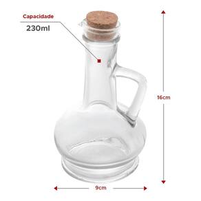 Especificações Técnicas: - Kit com 2 unidades - Produzido em vidro resistente - Tampa produzida em rolha de cortiça - Capacidade: 230ml - Medidas: 16cm x 9cm altura x largura