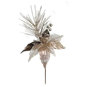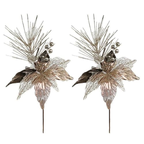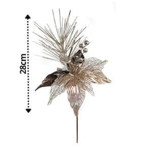 -02 Unidades Galho Natal Decorativo Flor Bico e Papagaio Champanhe Luxo Glitter 28cm