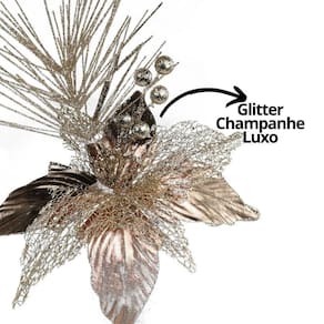Eleve sua decoração natalina com este elegante galho flor decorativo bico de papagaio em tons de champanhe, coberto com um brilho luxuoso de glitter. Medindo 28cm, este delicado galho é perfeito para compor arranjos sofisticados, decorar árvores de Natal ou incrementar guirlandas e centros de mesa. Com seu acabamento cintilante e detalhes refinados, ele adiciona um toque festivo e glamouroso ao ambiente, ideal para quem busca uma decoração de Natal com estilo e requinte.