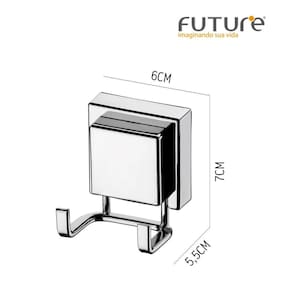 Kit 2 Ganchos Duplo Com Ventosa Multiuso Para Banheiro Lavanderia Cozinha Prata Future