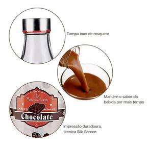 Kit 2 garrafa de vidro 950ml tampa aço inox leite água suco euro ========== sobre o produto ========== A garrafa de vidro 950ml com tampa de aço inox euro é ideal para levar charme e praticidade à sua rotina. Perfeita para armazenar e servir leite, sucos, água ou outras bebidas, ela conta com uma ilustração divertida de chocolate que dá um toque especial e acolhedor à peça. Fabricada em vidro resistente e com tampa de aço inox, mantém o conteúdo protegido e fresco por mais tempo. Uma escolha funcional e cheia de estilo para sua cozinha. ========== especificações ========== Capacidade de 950ml, ideal para uso diário com diferentes bebidas. Tampa em aço inox, que ajuda na conservação e evita odores. Ilustração temática de chocolate, charmosa e divertida. Feita em vidro de alta qualidade, resistente e fácil de limpar. Ideal para servir à mesa com elegância ou armazenar na geladeira. ========== ficha técnica ========== Unidades: 2 Medidas: 27 x 8,5 x 8,5cm Material: vidro / tampa de aço inox Capacidade: 950ml Marca: euro home : 3 meses Estamos online para quaisquer dúvidas, Agradecemos e aguardamos o seu pedido. P: a tampa veda bem R: sim, a tampa de inox possui boa vedação, ideal para conservar o conteúdo. P: o produto é novo ou Marca: Não Informado Ean: 7900425528055