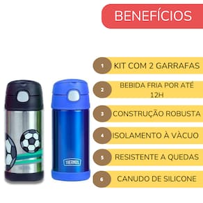 Ambas as garrafas são projetadas com materiais de alta qualidade, incluindo aço inoxidável e plástico BPA Free, garantindo a segurança e a saúde das crianças em todas as ocasiões. Além disso, sua tecnologia de isolamento a vácuo patenteada pela Thermos assegura que as bebidas permaneçam na temperatura ideal por mais tempo, mesmo em dias quentes.