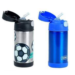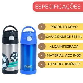 Kit 2 Garrafa Térmica Infantil Inox 355ml Canudo Com Alça Azul e Bola