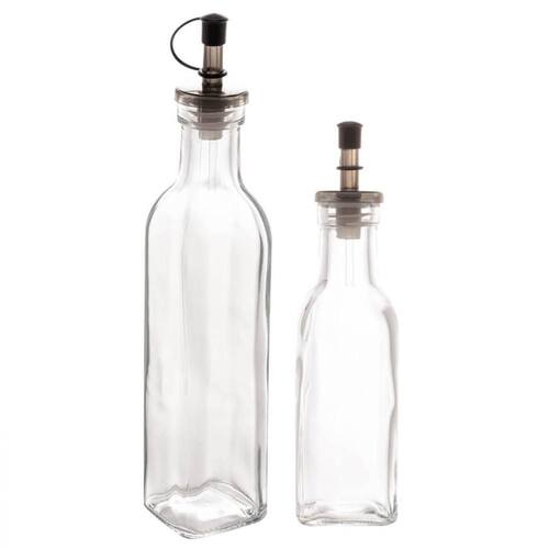 Kit 2 Garras de Vidro para Azeite e Vinagre com Bico Dosador e Tampa Lyor Transparente.