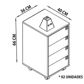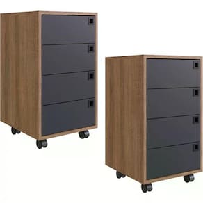 Kit 02 Gaveteiros Para Escritório, com design moderno e super prático, estrutura em MDP de 15mm, contando com pintura Finish Foil (Fosco) que também é conhecido como FF atendendo a todos os requisitos de qualidade e durabilidade. Conta com 04 gavetas com corrediças metálicas que suportam até 5 kg cada, tampo superior suporta até 10 kg, acompanha 04 rodízios. É a escolha certa para você compor o melhor projeto pra seu escritório, tornando o ambiente em que estiver muito mais moderno. Estrutura suporta até 20 Kg distribuídos. Fácil de montar e com acabamento office que deixa o móvel ainda mais elegante. Este móvel chegará em sua casa separado em 02 volumes.