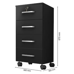 Kit 2 Gaveteiros para Escritório Gávea com Chave e 2 Livreiros Office com Portas Grandes Preto Fosco – Móveis Leão