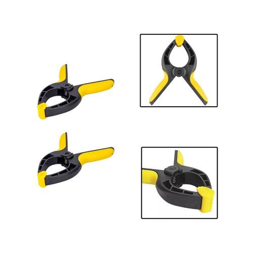 Marca: EDA ProfissionalModelo: 0MC2XConjunto Exclusivo: 2 grampos sargento multiusoDimensão: 4 Polegadas (100mm)Abertura Máxima: Aproximadamente 40mmMaterial: Fibra de nylonCaracterísticas: Resistente à ferrugem e levePunhos texturizados para uma pegada firmeIdeal para colagem de madeiras e outros materiaisFácil de manusearSistema de mola no caboMordentes articulados de plásticoConstruído com materiais de alta performanceEssencial para marceneiros, carpinteiros, pedreiros e maisExtremamente resistente e leveProporciona excelente suporte para fixaçãoPerfeito para a imobilização de objetos em superfícies planas ou bancadas, e para auxiliar em diversas atividades como furar, serrar, colar ou parafusar. Peso do Grampo: 0,40 gramas