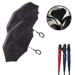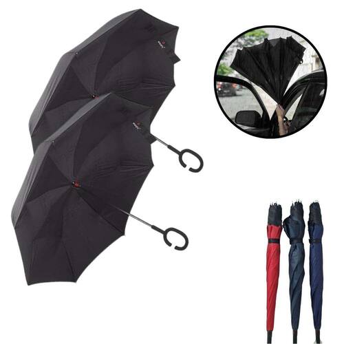 Kit 2 Guarda Chuvas Invertido Grande Sombrinha para Carro Cor: Vermelho Kit 2 Guarda Chuvas Invertido Grande Sombrinha para Carro