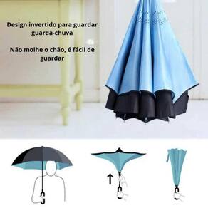 Como funciona O guarda-chuva invertido possui um sistema de fechamento inovador, justamente por fechar ao contrário, facilitando ao entrar no carro em dias de chuva, retendo água. Após fechá-lo, basta colocá-lo em pé para a água escorrer e logo estará seco. Desenvolvido para permanecer em pé, traz mais praticidade ao seu dia-a-dia.