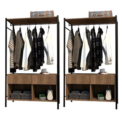 Kit 2 Guarda Roupas Closet Industrial 90cm 2 Gavetas Paris Light Demolição/Preto - Artefamol