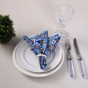 Kit 2 Guardanapos De Tecido Estampado Allegra 2 Peças 35cm X 35cm 100% Poliéster - Azulejo