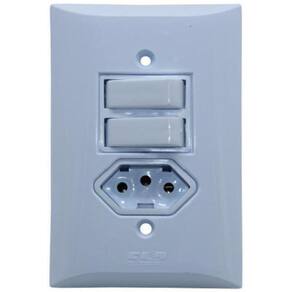 Conjunto contém: 1 Placa 1 Módulo com 1 tomada 20A 3 pinos + 2 interruptores simples