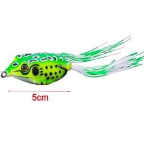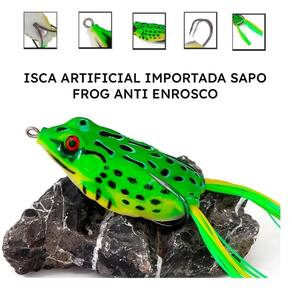 Para os amantes da pesca de traíras, traírões, tucunarés e outros predadores, a isca artificial Sapo Frog possui uma estrutura excelente, possuindo várias maneiras de trabalho, onde facilita na captura do troféu, possui anzol duplo e 12.5 gramas, um peso excelente para grandes arremessos, suas cores lindas atraem facilmente o troféu, além de contar com sistema anti-enrosco. Com um anzol extremamente afiado, garantindo fisgadas precisas.Isca Artificial Sapo Frog é especial para a pesca de traíras, trairão, tucunarés e outros predadores. A melhor escolha dos pescadores, é uma ferramenta poderosa de captura. Trabalha bem sobre vegetação aquática ou em meia água, ação de mergulho suave e rápida.Especificaçõestipo: Sapo FrogPeso: 12,5grComprimento: 5,5cmAnzol: Duplo Marca: Não Informado Ean: 1000000159011