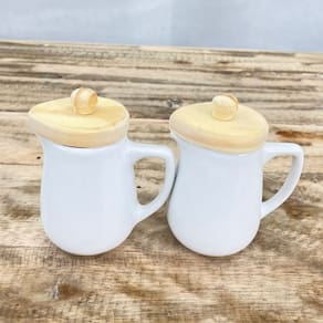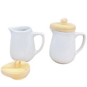 kit 2 Jarras 120ml - Galheteiro Azeite e Vinagre - Porcelana tampa pinusPeças de porcelana feitas de material de alta qualidade, queimados em alta temperatura, o que os torna fortes, resistentes e com alto brilho, e deixa qualquer ambiente mais bonito e moderno. A porcelana tem uma enorme vantagem sobre outros materiais, pois é fácil de limpar e não absorve cheiro, o que deixa a peça e o ambiente livre de mal cheiro.Ótimas para servir molhos e caldas para acompanhar seus pratos do dia a diaPodem ser utilizadas também para servir azeite e Vinagre. Molhos e caldas em suas refeições.São resistentes ao forno e micro-ondas. Cor Branca Capacidade 120ml OBS: Por se tratar de madeira de pinus natural, entre os pires podem existir pequenas variações na tonalidade das cores da madeira. Pode haver variação de tonalidade entre as peças de porcelana devido a diferentes lotes de queima. Embalagem contêm 2 peças Marca: Antilope Decor Porcelanas