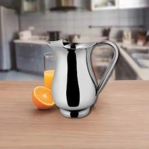 Esta jarra de suco é fabricada em aço inox, um material durável e higiênico que não libera resíduos. Com capacidade para 2 litros, ela é ideal para servir bebidas diversas com praticidade e elegância. A meia tampa permite servir facilmente, enquanto o separador evita que o gelo caia no copo ou taça, mantendo a bebida gelada por mais tempo.
