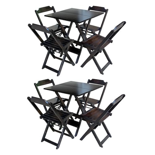 Kit 2 Jogos De Mesa Com 4 Cadeiras De Madeira Dobravel 70x70 Ideal Para Bar E Restaurante - Tabaco