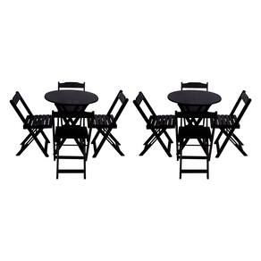 Kit 2 Jogos De Mesa Dobravel Com 4 Cadeiras Tampo Redondo 70x70 Preto - Preto