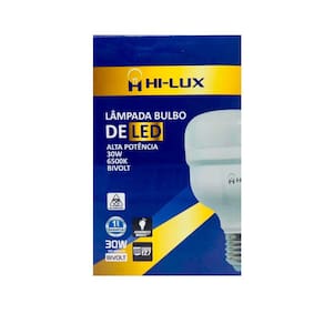 ESPECIFICAÇÕES - Índice de proteção: IP20 - Tensão: Bivolt Automático 100V - 240V - Ângulo de abertura: 220º - IRC**: >80 - Vida útil: 25.000 horas - Potência: 30W - Fluxo luminoso: 2400 lumens - Base: E27 - Temperatura de cor: 6500K (Branca) - Eficiência luminosa: 80lm/W -Dimensão (mm): 100mm x 153mm - Equivalência: Incandescente 150W / Fluorescente 41W