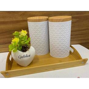 Kit 2 Latas Porta Mantimento Tampa Bambu Jogo de mantimentos
