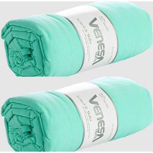 Kit 2 Lençóis de Malha Queen Venesa Cor: Erva Doce Para Colchão de 1,58m x 1,98m, com até 30 cm de altura. Com elástico em toda volta.Contém: 2 Lençóis de malha Tamanho 2,30m x 2,70m