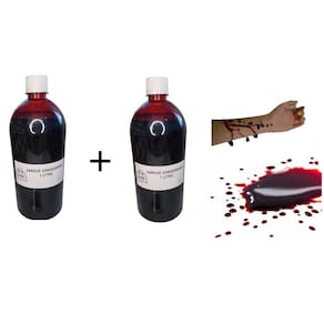 Especificações técnicas do produto: Sangue Artificial Falso para Festa, cosplay e efeitos especiais 2 litros Modelo: 2 litros Cor: vermelho Sangue Teatral, para cinema, tv, Artificial. Muito Utilizado como complemento na criação dos efeitos de cortes, feridas, queimaduras etc... O sangue falso não deixa manchas, é de fácil remoção da pele, pode ser Utilizado na boca uso externo e é hipoalergênico. Conteúdo: 2 Litros Não comestível.