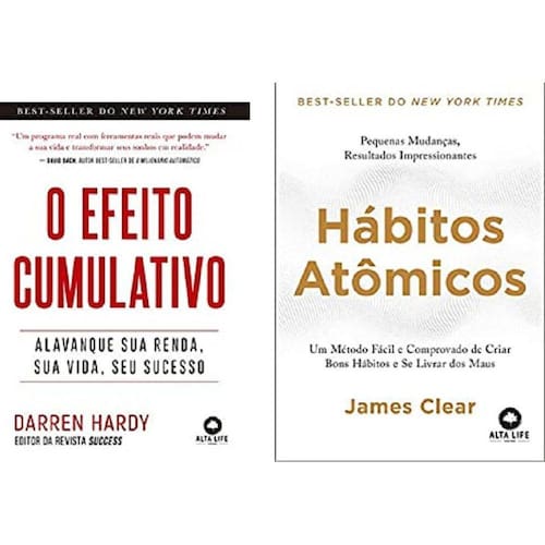 Kit 2 LIVROS O efeito cumulativo + Hábitos Atômicos Kit 2 LIVROS O efeito cumulativo + Hábitos Atômicos O efeito cumulativo: Alavanque sua renda, sua vida, seu sucesso Capa comum - 9 abril 2020Edição Português por Darren Hardy Autor , Samantha Batista Tradutor Editora : Alta Life; 1 edição 9 abril 2020 Idioma : PortuguêsCapa comum : 176 páginasISBN-10 : 8550813869ISBN-13 : 978-8550813868Dimensões : 21.2 x 13.8 x 1.2 cmCondição do Item: NovoTipo de Narração: ManualFormato: PapelQuantidade inclusa: 1 Hábitos atômicos: Um método fácil e comprovado de criar bons hábitos e se livrar dos maus. Capa comum - Edição padrão, 8 agosto 2019Edição Português por Wendy Campos Tradutor , James Clear Autor Editora : Alta Life; 1 edição 8 agosto 2019 Idioma : PortuguêsCapa comum : 320 páginasISBN-10 : 8550807567ISBN-13 : 978-8550807560Dimensões : 24 x 17 x 1.8 cmCondição do Item: NovoTipo de Narração: ManualFormato: PapelQuantidade inclusa: 1