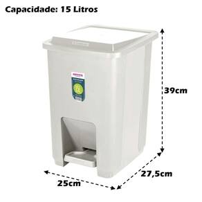 KIT 2 LIXEIRA 15 LITROS COM PEDAL