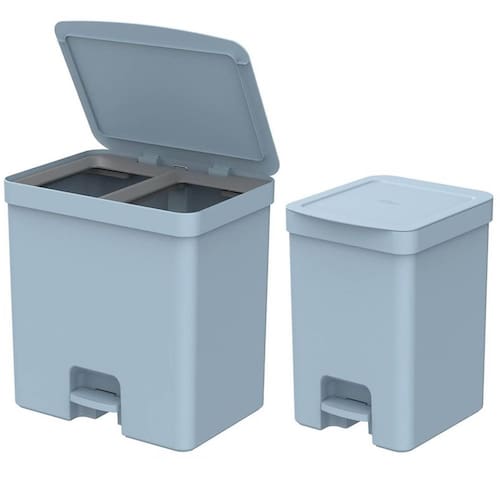 - Com a lixeira dupla, você ganha dois compartimentos para separar o seu lixo de forma prática, facilitando a reciclagem.