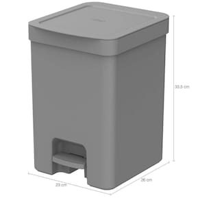 Dimensões da lixeira simples: 26cm (C) x 23cm (L) x 33,5cm (A);