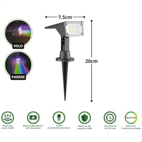 Kit 2 Luminária Spot Solar De Jardim 50 Lumens Rgb Multicor