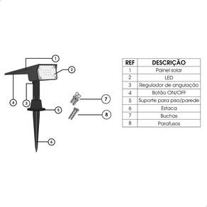 - instalação simples e rápida: posicione o spot em um local que receba bastante luz solar. Um sensor fotossensível acende automaticamente a luminária ao anoitecer.