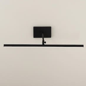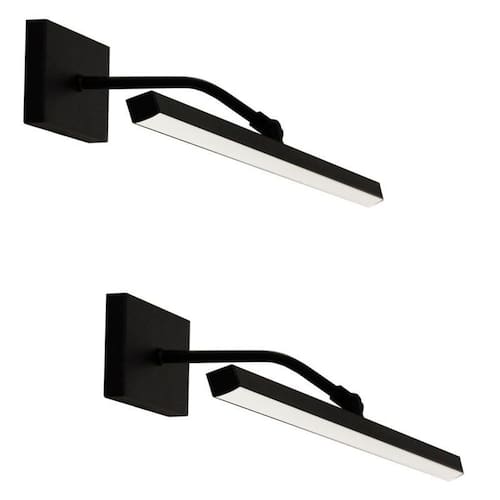 Modelo : Camarim Cor es : Preto Material : Alumínio Base Canopla : 12 x 7,5 cm Iluminação : Fita de LED Temperatura : 3000K Branco Quente Voltagem : 127V Medida : 14 x 7 x 50 cm Peso : 400g Conteúdo da embalagem : 2 Luminária de Parede
