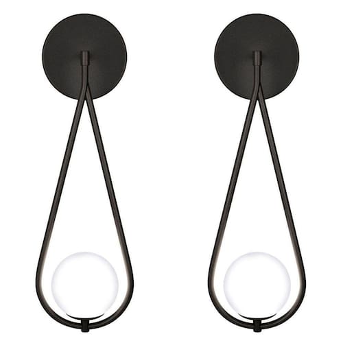 Kit 2 Luminárias Arandela Parede Gota Globo Vidro Sala Preto