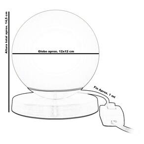 Luminária Abajur de mesa Globo Orby Produto bivolt 110/220v, soquete E27.Luminária Abajur de mesa Globo Orby ganha espaço na decoração de interiores, permitindo a valorização do espaço e um ambiente mais acolhedor.Com linhas simples, delicadas e design moderno, a luminária pode ser instalada em diversos ambientes internos de sua casa.Medidas:Com aproximadamente 12 cm de base, 12 cm de largura x 12 de altura da bola, totalizando aproximadamente 14,5 cm de altura total da lumináriaFio de 1 metro de comprimento.Produto pesando aproximadamente 400gFácil instalação, fácil limpeza, e o que a de melhor, um ambiente lindo, charmosos e moderno.Lâmpada recomendada "Led Compacta"PRODUTO NÃO ACOMPANHA NENHUMA LÂMPADA