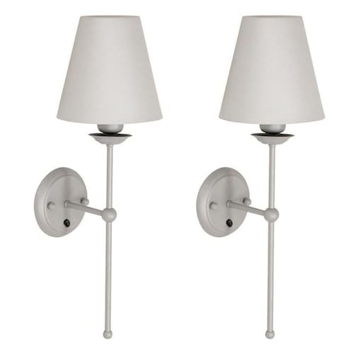 Modelo : 6003 Cor es : prata Material : alumínio Cúpula de tecido : 17cm x 16,5cm Base canopla : 12cm Soquete da luminária : e27 Número de lâmpadas : 1 lâmpada Voltagem : 127v / 220v Medida : 50cm x 19cm x 16,5cm Conteúdo da embalagem : 2 arandela