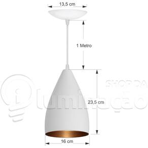 Medidas do pendente 16 cm de diametro boca 23,5 cm de altura do pendente 13,5 cm canopla de teto 1,00 metro de cabo