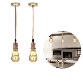 Kit 2 luminárias pendentes soquetes bocais e27 rose gold com lâmpadas vintage formato pera filamento led luzes amarelas Kit 2 pendentes retro fio vintage com duas lâmpadas formato pera