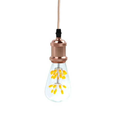 Kit 2 luminárias pendentes soquetes bocais e27 rose gold com lâmpadas vintage formato pera filamento led luzes amarelas Kit 2 pendentes retro fio vintage com duas lâmpadas formato pera