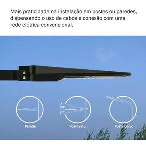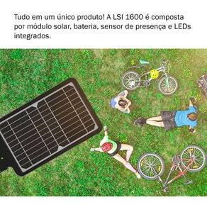 A Luminária Solar Integrada Intelbras LSI 1600 é o produto ideal para quem procura por uma luminária versátil, com instalação simples, prática e que não precisa de estrutura de tubulação, fios e conexão com a rede elétrica para funcionar.A LSI 1600 possui toda a solução em um só produto, placa solar, bateria e leds. Podendo ser instalada em parede ou em postes, sendo uma ótima opção para iluminar jardins, parques, fachadas e outros tipos de áreas abertas.Luminária integradaTudo em um único produto! A LSI 1600 é composta por módulo solar, bateria, sensor de presença e LEDs integrados.Fácil instalaçãoMais praticidade na instalação em postes ou paredes, dispensando o uso de cabos e conexão com uma rede elétrica convencional.Dois modos de funcionamentoNo modo econômico garante o máximo de autonomia, enquanto no modo sensor possui baixa luminosidade durante à noite e máxima ao detectar movimento.Acionamento automáticoA luminária acende ao anoitecer e desliga durante o dia, proporcionando mais economia.Características técnicasInstalação facilitada, possui suporte e acessórios para instalação em poste reto, curvo e parede;Ângulo de iluminação ajustável;15W de potência * 1600lmA iluminação é acionada automaticamente ao anoitecer;Autonomia de até 3 noites após um dia inteiro de sol;Proteção IP65, luminária resistente a jatos d?água e poeira;Funcionamento inteligente: possui dois modos de operação para máxima economia de bateria da luminária.1. No modo Econômico a luminária irá permanecer acesa com até 5% da potência e ao detectar presença irá acionar com 100% da capacidade, isto nas primeiras 5 horas ou quando chegar ao nível de 30% de carga da bateria. Após este período a luminária ficará com os LEDs desligados e acionará normalmente com 100% da capacidade quando detectar alguma presença.2. No modo Sensor a luminária permanecerá acesa com 5% da potência e ao detectar presença irá acionar com 100% da capacidade, depois retornará ao modo de baixa luminosidade até a próxima detecção. Para mais detalhes verifique manual de usuário.Modelo do produto LSI 1600Cor PretoQuantidade pacote 01Comprimento do produto 49,25 cmLargura do produto 23,19 cmAltura do produto 5,8 cmPeso do produto 2 kgConteúdo da embalagem 2 LUMINÁRIAS Suporte para fixação em poste reto e parede;Painel solar;Sensor de movimento;Botão liga/desliga;Painel de iluminação LEDAbraçadeiras tipo U vergalhão;Chumbador Parabolt 6 mm;Arruelas lisas 6 mm;Arruelas de pressão 6 mm;Porcas sextavadas 6 mm;Parafusos 6 mm;Adaptador para fixação em poste curvo;Chave Allen 6 mm.*Garantia: 12 meses contra defeitos de fabricação.*Objetos de decoração das fotos não estão inclusos.*As cores podem variar conforme monitor/smartphone utilizado para a visualização do anúncio.