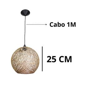 Kit 2 Luminárias Rústicas Teto Artesanal Fibra Natural 25 Cm