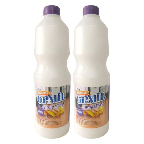 Kit 2 lustra móveis opmil lavanda 1 litro cada Kit com: 2 lustra móveis opmil lavanda 1l cada O lustra móveis opmil é formulado a base de cera de carnaúba e silicone que o que garante um brilho intenso onde é aplicado, pois ele forma sobre as superfícies uma fina película que ajuda a proteger contra manchas de água, diminuindo a aderência de poeiras. Além de móveis tradicionais, móveis rústicos, janelas etc, ele, também, pode ser utilizado em geladeiras, esmaltados e azulejos. O lustra móveis opmil garante aos móveis ótimo acabamento, dá um melhor tratamento, limpeza e brilho, sem engordurar. É um ótimo custo benefício. Modo de usar: - agite bem antes de usar, pois ele é mais concentrado que lustra móveis comum, fazendo ele render muito mais. Aplique com uma flanela limpa e seca e em seguida lustre para realçar e dar brilho. Atenção: não utilize o produto em pisos e escadas. Produto saneante notificado na anvisa n 25351518935202041 Validade: 24 meses 2 anos a partir da data de fabricação