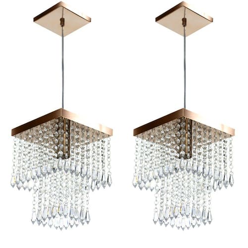 Kit 2 Lustre Pendente De Cristal Acrílico Marrycriic Cobre