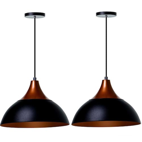 Kit 2 Lustre Pendente Panamá Preto Topo Cobre Alumínio