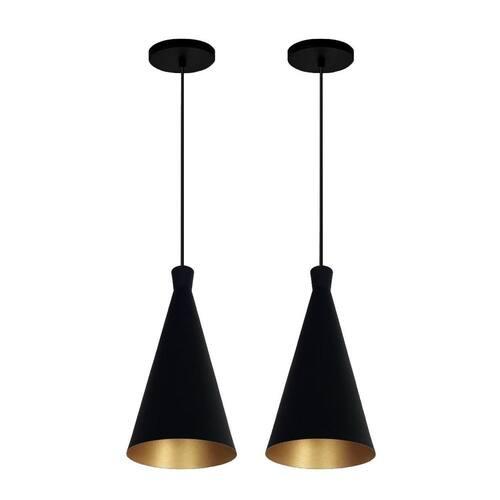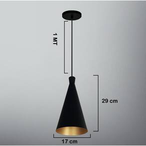 Kit 2 Lustre pendentes Funil Dixon Canadá Preto com Dourado Lustre Pendente Modelo: Tom Dixon Cor: Preto com Dourado Medidas Aproximadas: Altura:29 cm Diâmetro: 17 cm Canópla de teto: 12 cm Soquete e-27 plástico Material: alumínio Marca R.R.J.V Negócios O pendente acompanha 1 Um Metro de fio com altura ajustável. Marca: Não Informado Ean: 7898970122333