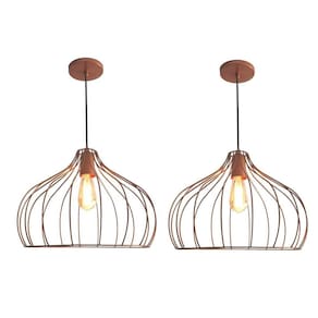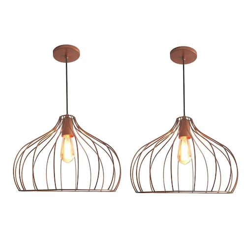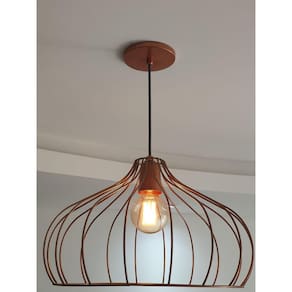 Descrição do produto: Modelo: 2 lustres pendente aramado retrô onion cobre 42cmx25cm Código do produto: 8026 Características: Lustre para uso como pendente ,perfeito para decorar o ambiente interno ou área coberta: varanda, sala de estar, sala de jantar, suíte, quartos, corredor, hall, mezanino, escadas, churrasqueira, lareira, área de circulação, lojas, comércios Especificações : Formato : cilíndrico tensão: bivolt Dimensões do aramado : 42cm x 25cm altura Estrutura: arame pintura liquída eletrostática Rosca soquete: encaixe e-27 / cabo: 1 metro lâmpada não inclusa Garantia: Todas as garantias são dadas pelo fabricante. 1 ano contra defeito de fábrica Marca: Boreal Cúpulas E Abajures