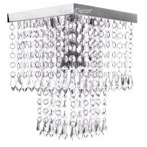 Kit 2 Lustres De Cristal Acrílico Com Base De Inox 20x20cm - Voltagem: 110V/220V (Bivolt) / Tamanho: 30cm