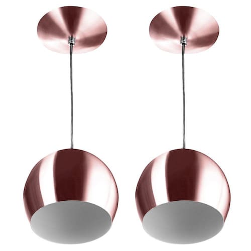 Kit 2 Pendente Bola Pequeno O Pendente bola, adiciona luxo e sofisticação a sua decoração, Sua aplicação é muito versátil podendo ser instalada em quartos, sala de jantar, sala de estar, varanda, corredores ou onde a imaginação mandar. Nosso pendente é feito em alumínio, causando um lindo efeito luminoso, Uma peça que vai fechar com chave de ouro a decoração do seu ambiente. É indicada somente para uso interno, Utiliza 1 Lâmpadas E-27 de no máximo 30w cada. ESPECIFICAÇÕES Material: Aluminio Indicação: Iluminação e decoração Conteúdo da embalagem: 02 Pendente Bola Pequeno Dados Técnicos: -Alimentação: Bivolt -Tipo de lâmpada: 1 x E-27. (não inclusas) -Peso Aprox. com embalagem: 1200kg -Dimensões aprox. do produto 15x14cm (bola) -1 Metro de Fio PP Preto -Soquete de Porcelana -Canopla de Fixação de 12cm de diâmetro.