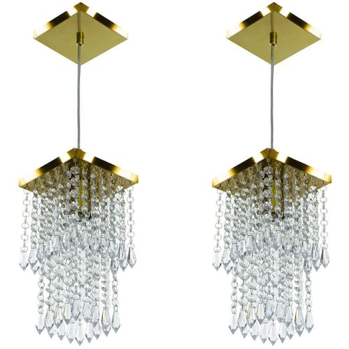 Kit 2 Lustres Pendente De Cristal Acrilico Spark Dourado