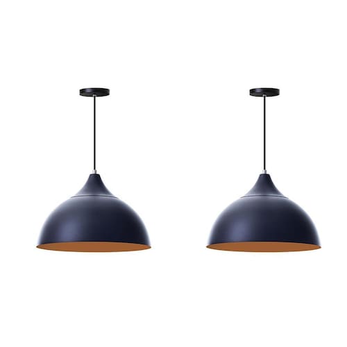Kit 2 Lustres Pendente Meia Lua Preto 30Cm Com Chapéu Preto